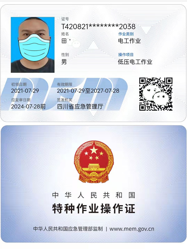 電工證有效期及復(fù)審期限 :特種人員操作證,每三年復(fù)審一次,