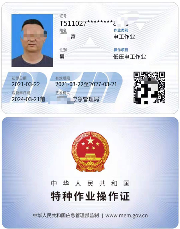 四川省成都市應急管理廳(原安監局):低壓電工證,高壓電工證,焊工證-熔化焊接與熱切割作業,電工證-電力電纜,電工證-繼電保護,電工證-電氣試驗,防爆電氣作業,高處安裝維護拆除作業,登高架設作業,制冷與空凋設備運行操作作業,制冷與空凋設備安裝修理作業,施工吊裝作業,施工挖裝作業,危化品負責人/管理人員,危化品從業人員上崗證,特種作業人員必須經專門的安全技術培訓并考核合格,取得《中華人民共和國特種作業操作證》(以下簡稱特種作業操作證)后,方可上崗作業。