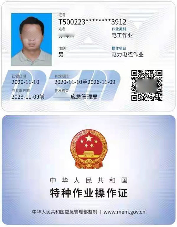 特種作業(yè)操作證。國家規(guī)定特種作業(yè)操作人員必須要做到持證上崗,電工特種作業(yè)操作證的作用相當于上崗證,主要證明持證人具有電工安全操作的知識和能力。電工特種作業(yè)操作證是由國家安全生產(chǎn)監(jiān)督管理總局頒發(fā)的,有效期3年,到期后必須復審。