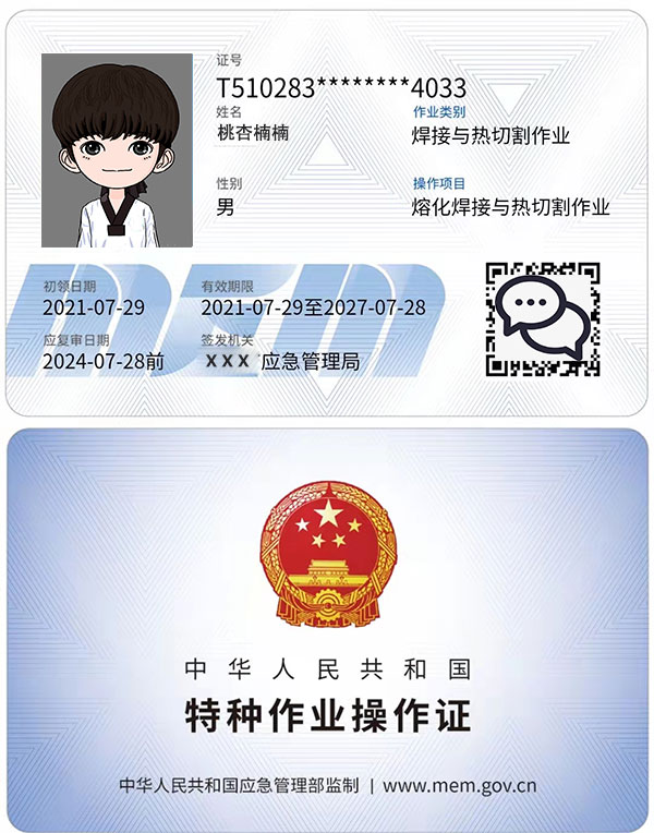 1、焊工特種作業(yè)操作證,俗稱焊工上崗證,由安全生產(chǎn)監(jiān)督管理局即(原安監(jiān)局)現(xiàn)應(yīng)急管理局頒發(fā),是一種類似于身份證的IC卡證件,全稱是熔化焊接與熱切割作業(yè),這個(gè)證書主要證明你具有此工種安全操作的知識(shí)和能力,是6年有效期,每3年一審,復(fù)審時(shí)間前2-3個(gè)月申請(qǐng)復(fù)審即可。