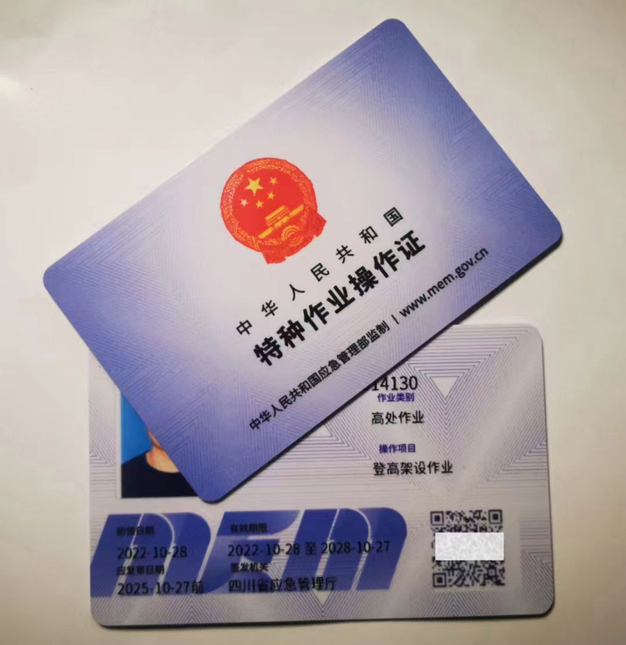 證書適用于利用專用設備進行建筑物內外裝飾、清潔、裝修,電力、電信等線路架設,高處管道架設,小型空調高處安裝、維修,各種設備設施與戶外廣告設施的安裝、檢修、維護以及在高處從事建筑物、設備設施拆除作業。