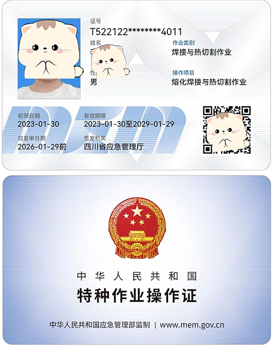 應急管理局《特種作業人員證書》低壓電工作業,高壓電工作業,熔化焊接與熱切割作業,電力電纜 ,繼電保護 電氣試驗, 防爆電氣作業,高處安裝維護拆除作業 ,登高架設作業, 制冷與空凋設備運行操作作業, 制冷與空凋設備安裝修理作業,特種從業人員上崗證是每3年一審!
